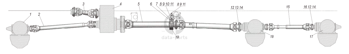 Карданная передача на шасси Урал 4320-1951-58 и автомобиль Урал 4320-0971-58 УРАЛ-4320-1151-59