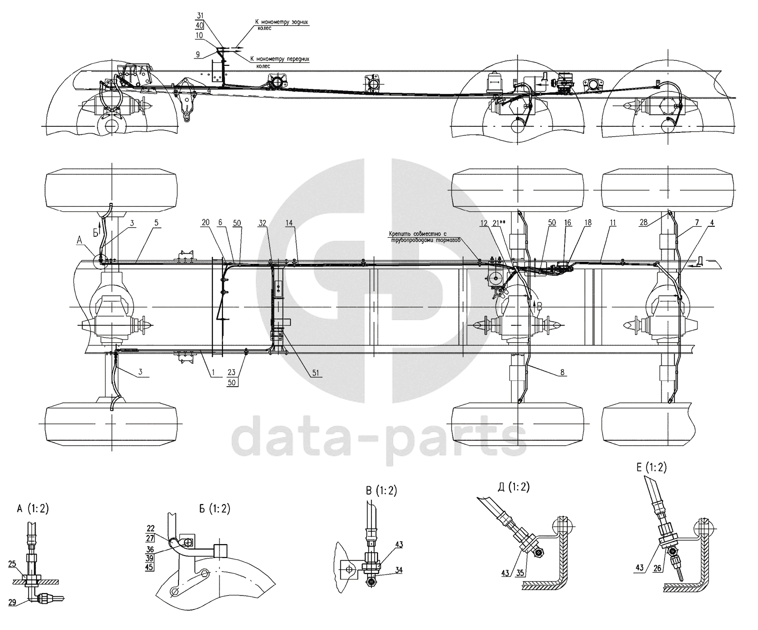 Система регулирования давления воздуха в шинах на автомобили 4320-1951-58, 4320-0971-58, 44202-58