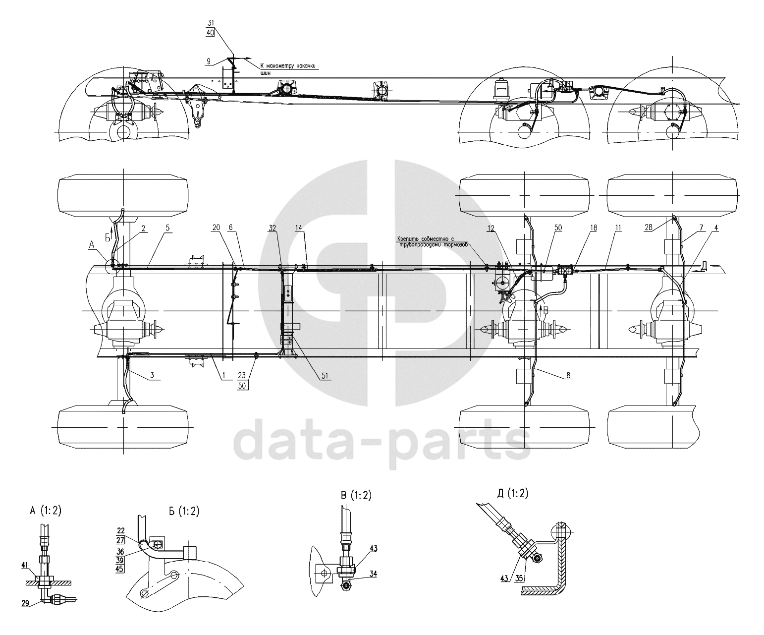 Система регулирования давления воздуха в шинах на автомобиль 4320-1151-59 УРАЛ-4320-1151-59