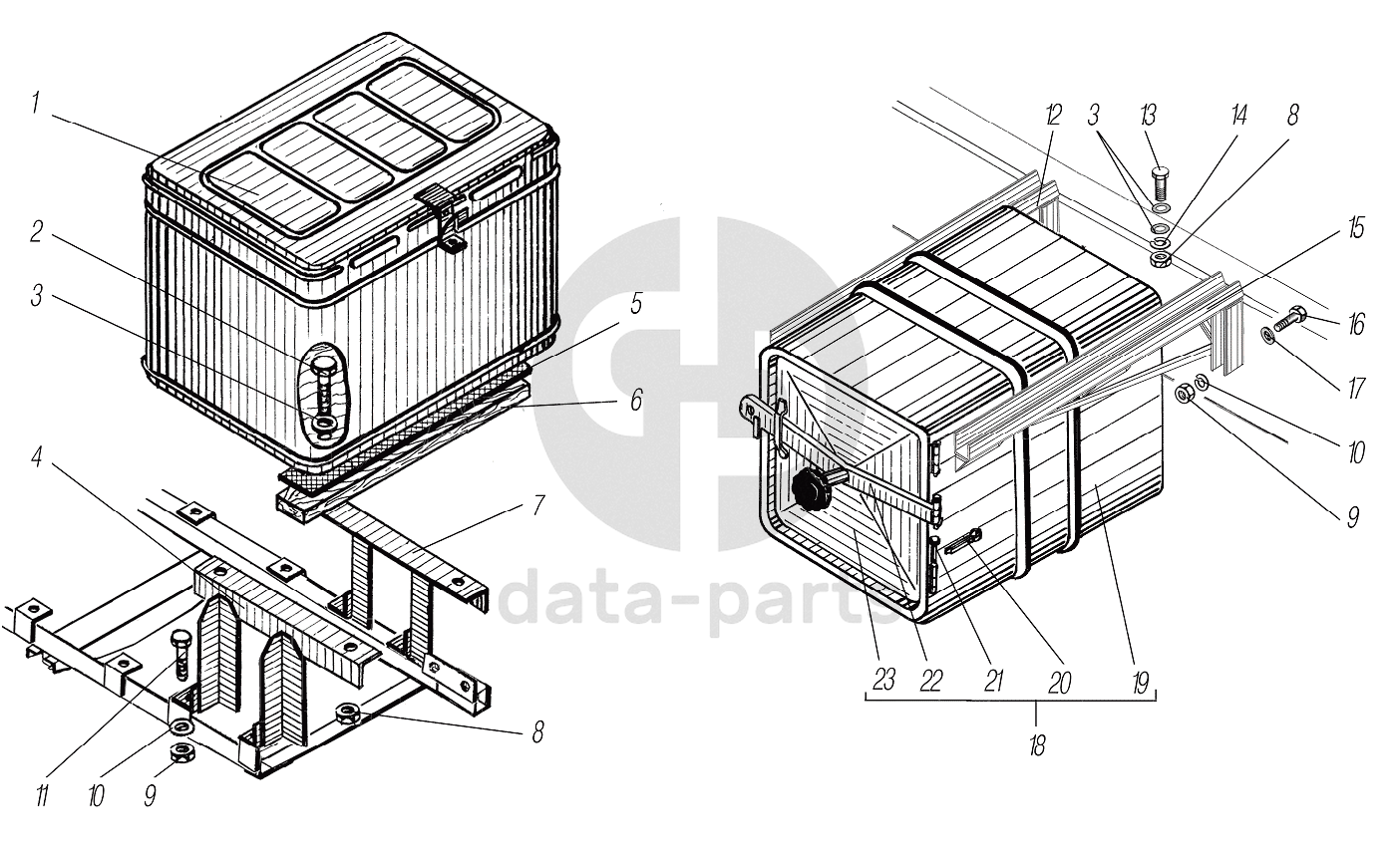 Ящик УРАЛ инструментальный с крышкой в сборе
