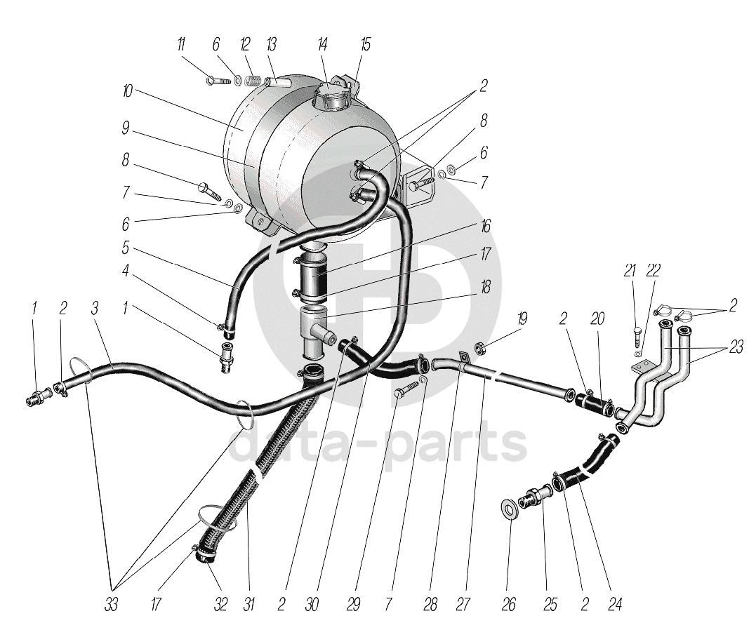 Установка расширительного бачка УРАЛ-4320-0971-58