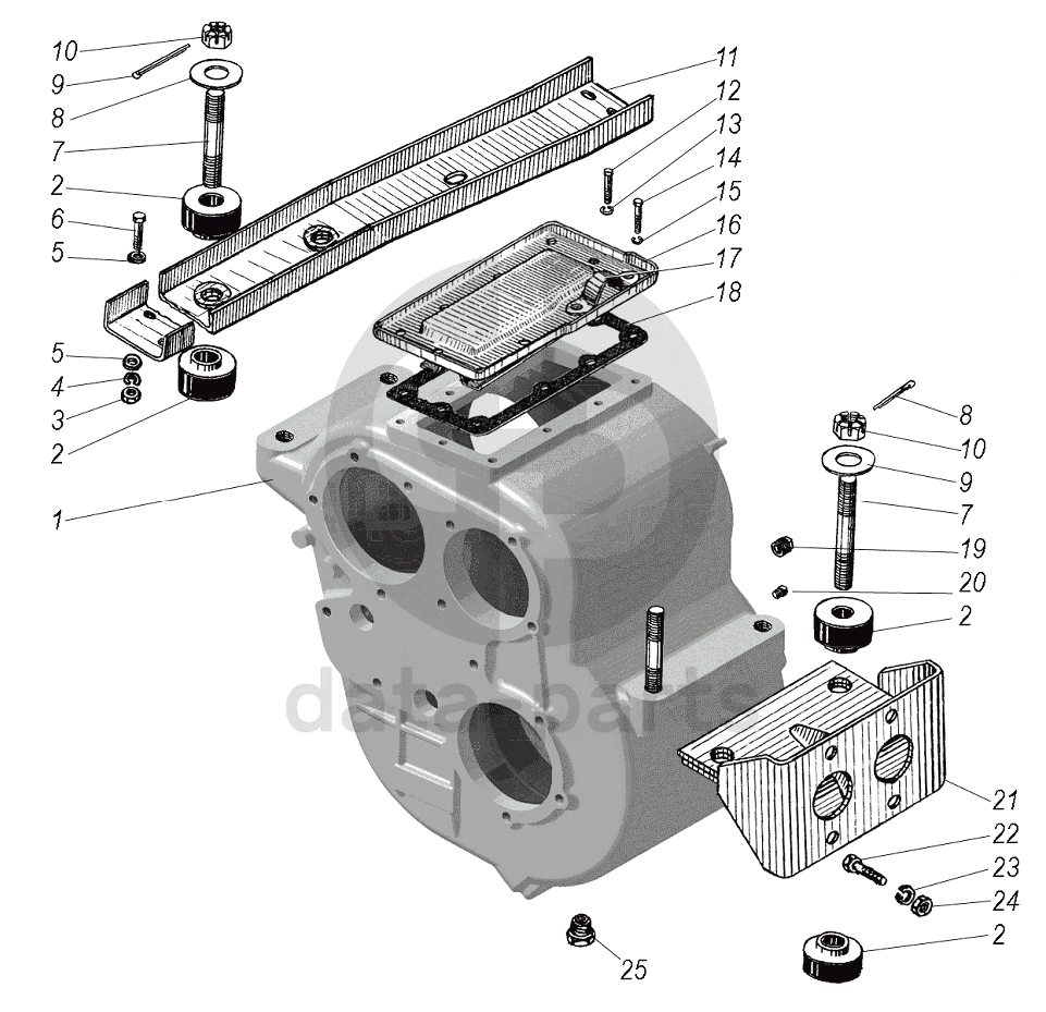 Картер и подвеска раздаточной коробки УРАЛ-4320-0971-58