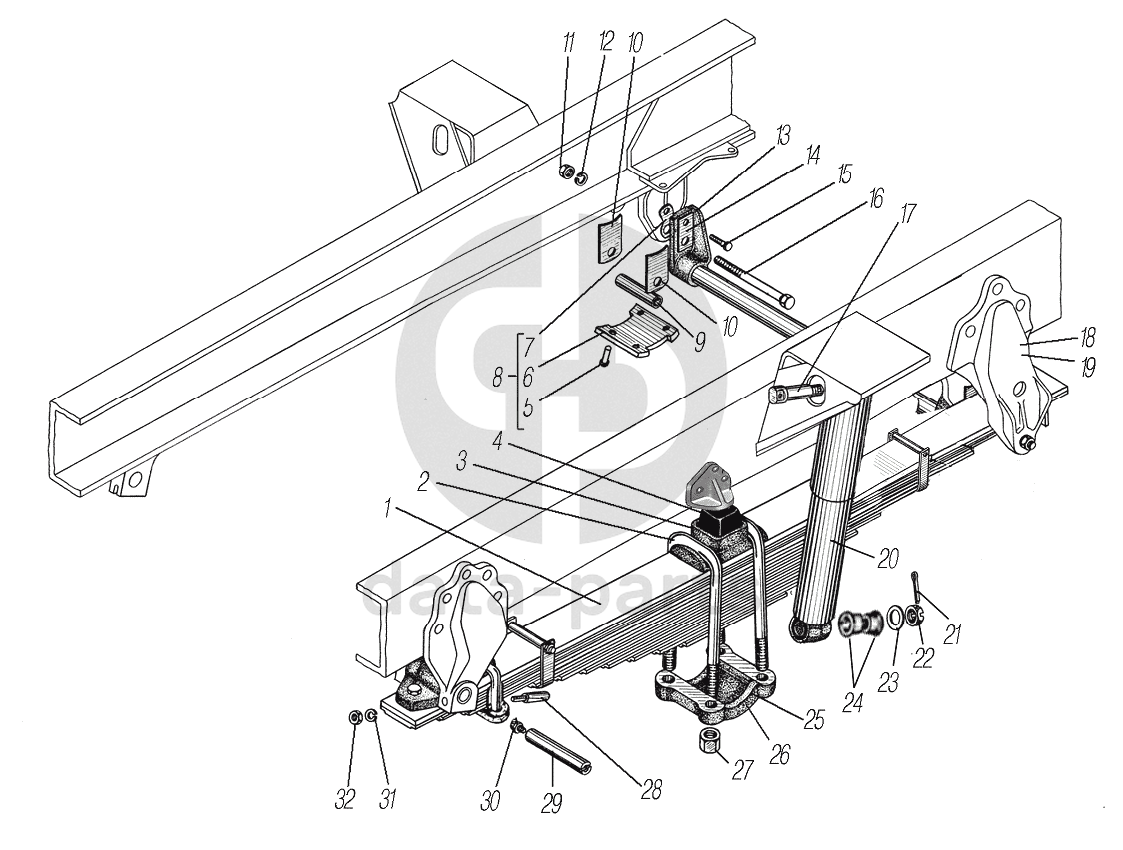 Хомут УРАЛ крепления рессоры передней левый (с 2003г.)
