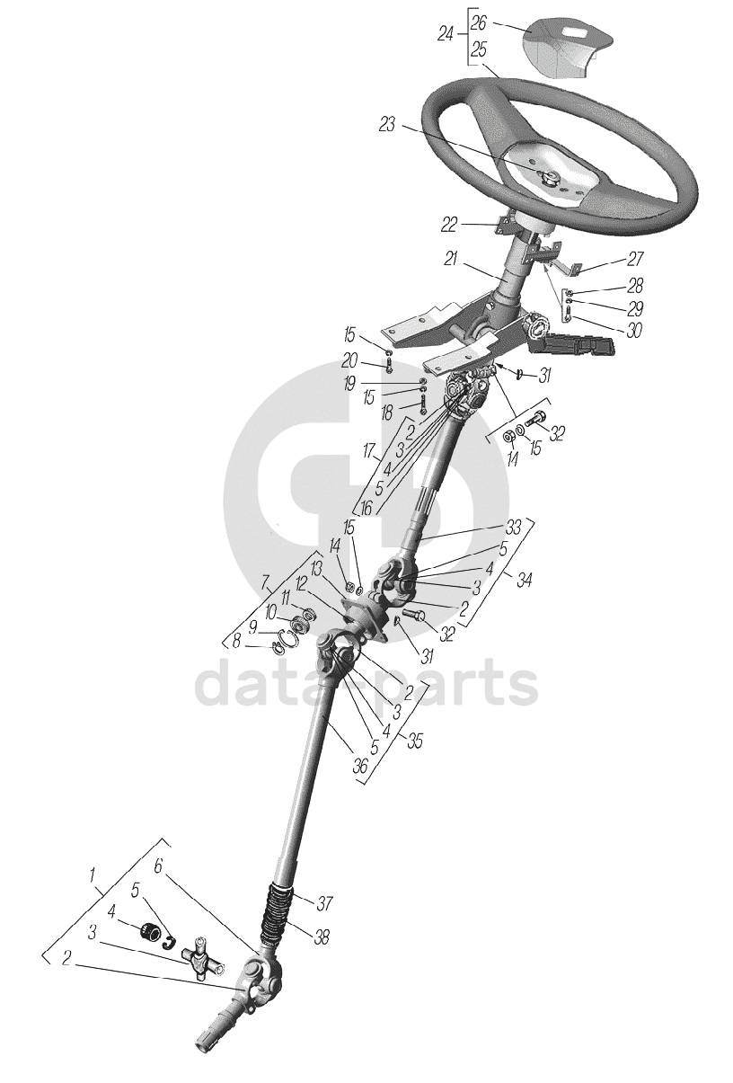Колесо и вал рулевого управления УРАЛ-4320-0971-58