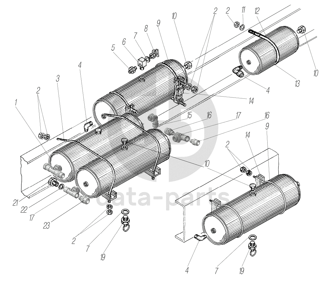 Установка воздушных баллонов на автомобили 4320-1951-58, 4320-1151-59, 4320-0971-58 УРАЛ-4320-0971-58
