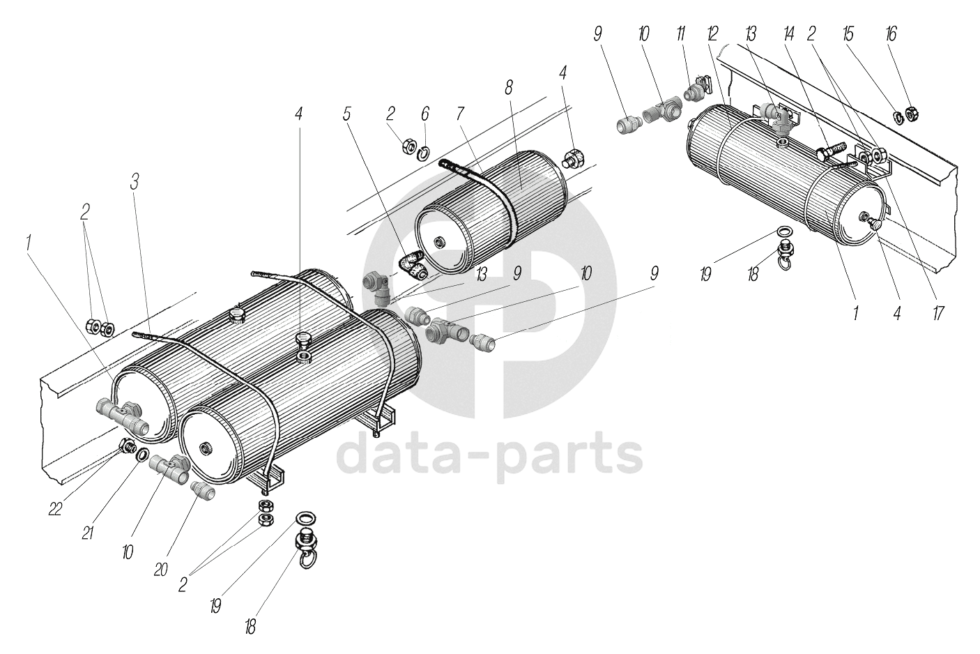 Установка воздушных баллонов на седельный тягач 44202-0511-58