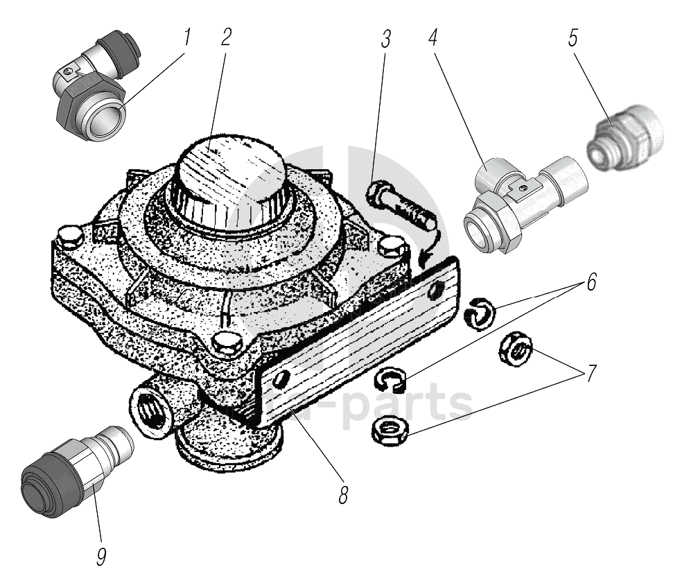 Установка клапана управления тормозами прицепа на тягач 44202-0511-58