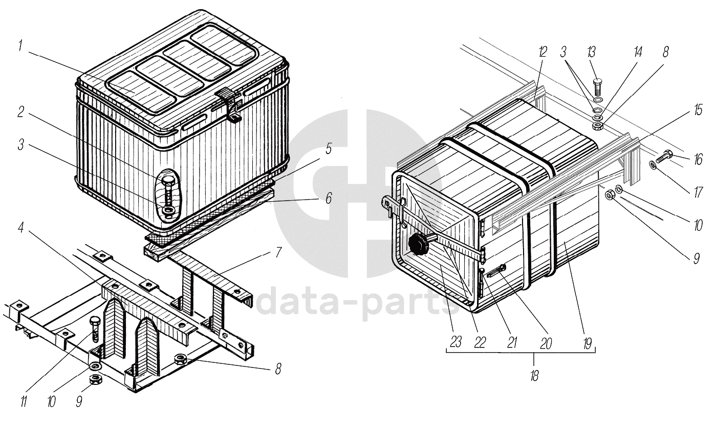 Ящик УРАЛ инструментальный с крышкой в сборе