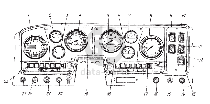 Щиток УРАЛ приборов левый (спидометр 16.3802) в сборе