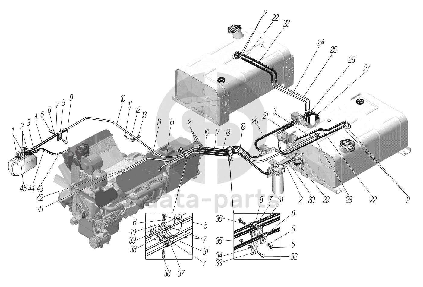 Трубопроводы и шланги системы питания с дополнительным баком УРАЛ-44202-0511-58