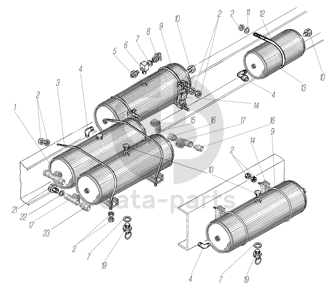 Установка воздушных баллонов на автомобили 4320-1951-58, 4320-1151-59, 4320-0971-58 УРАЛ-44202-0511-58