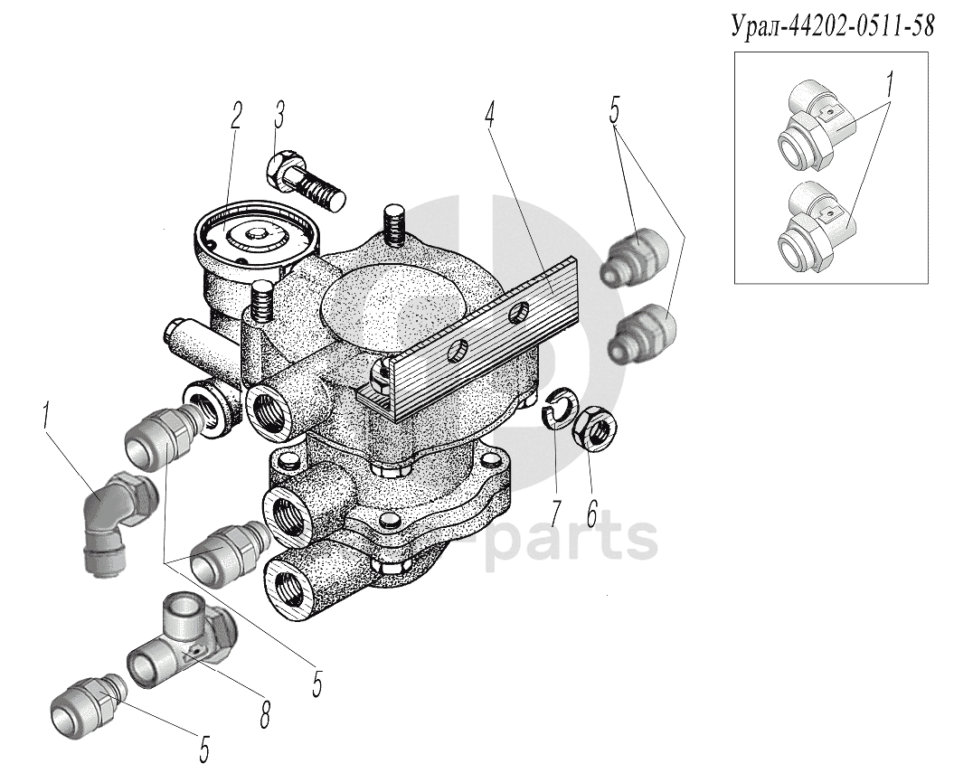 Установка клапана прицепа УРАЛ-44202-0511-58