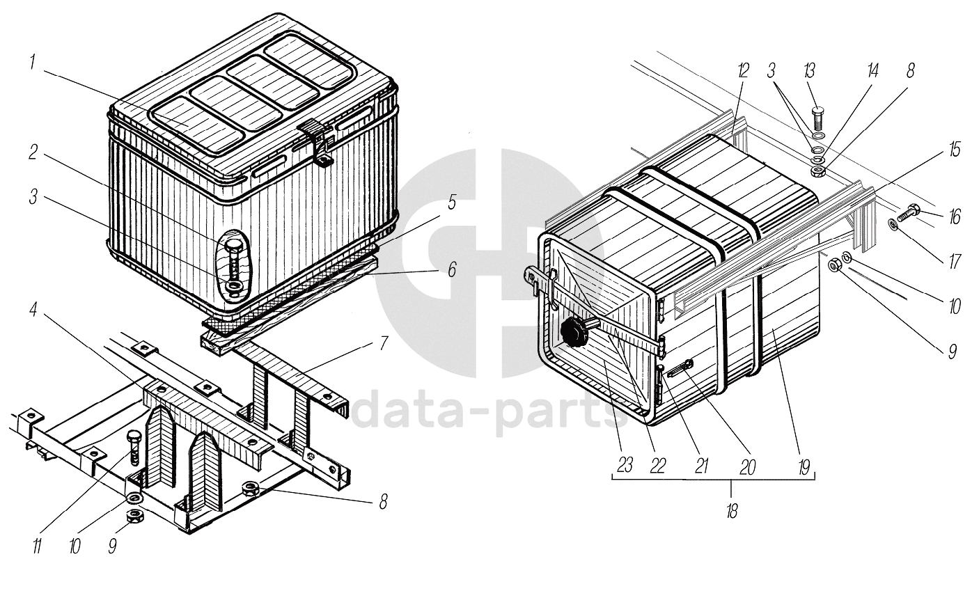Ящик УРАЛ инструментальный с крышкой в сборе