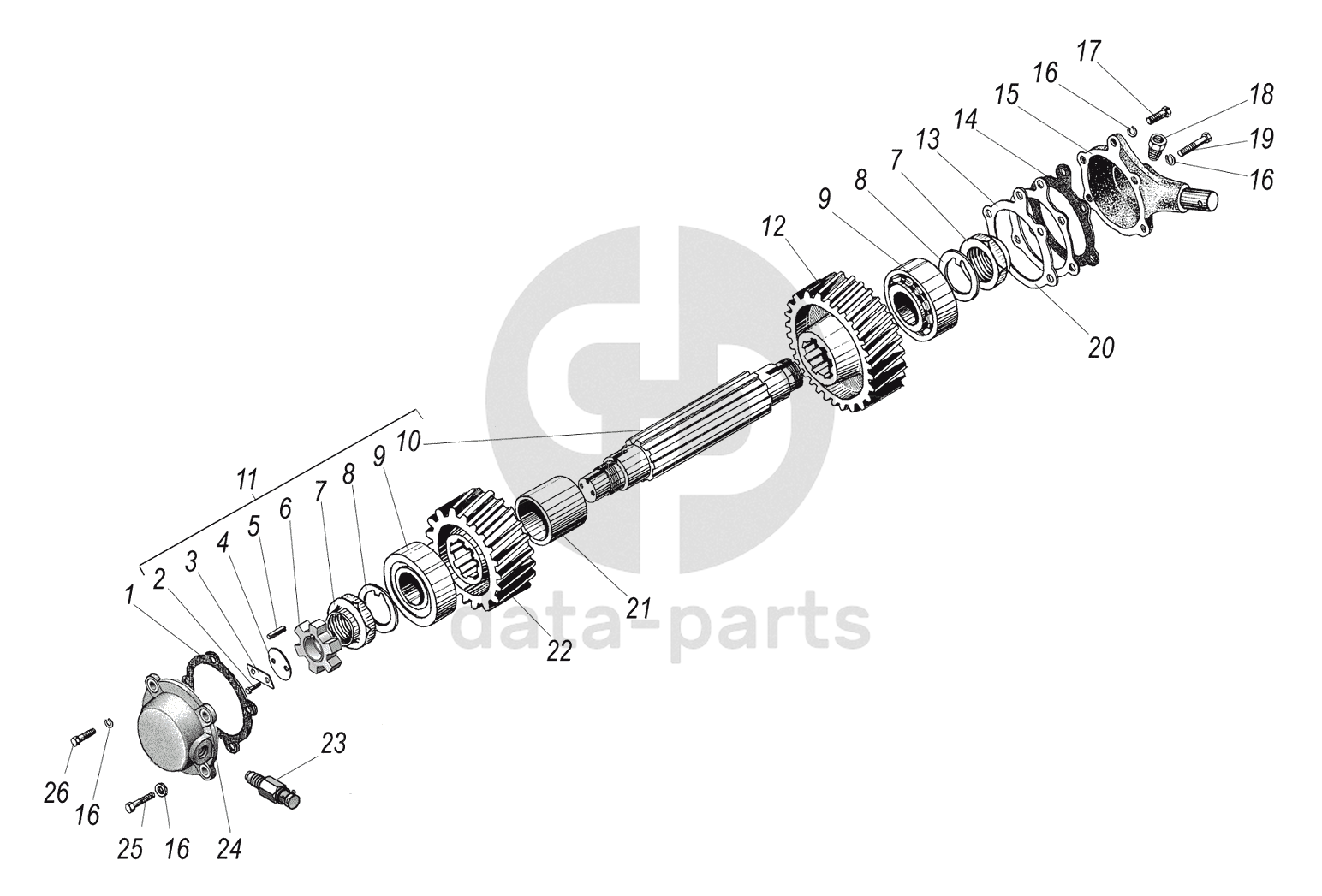 Промежуточный вал раздаточной коробки и привод спидометра УРАЛ-44202-3511-80М