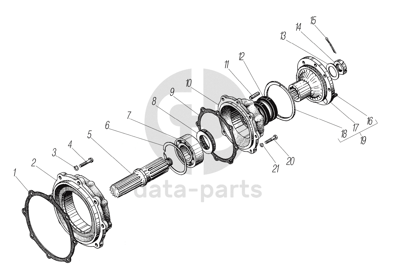 Фланец УРАЛ раздаточной коробки задний (торцевой шлиц) с Болтами в сборе Н/О