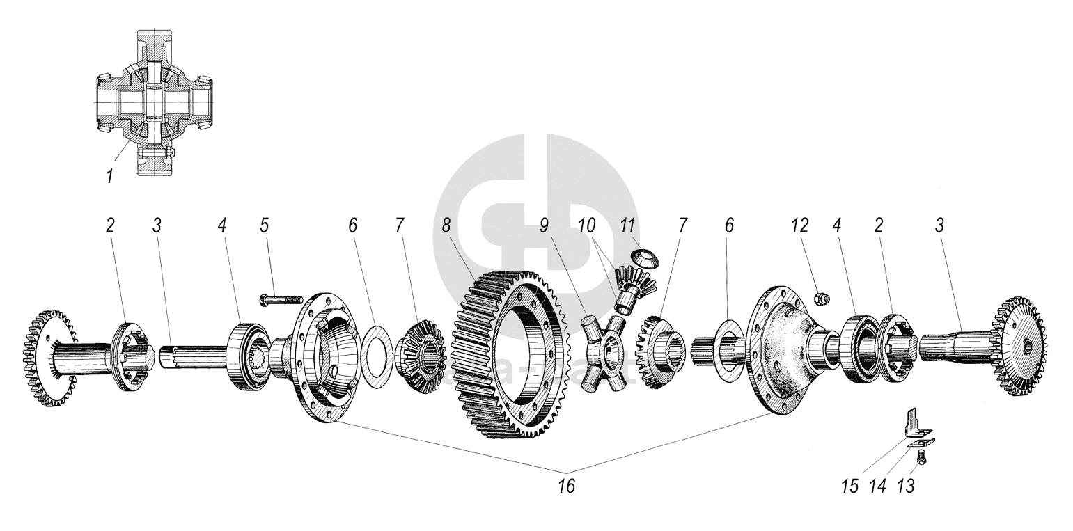 Дифференциал и полуоси среднего и заднего моста УРАЛ-44202-3511-80М