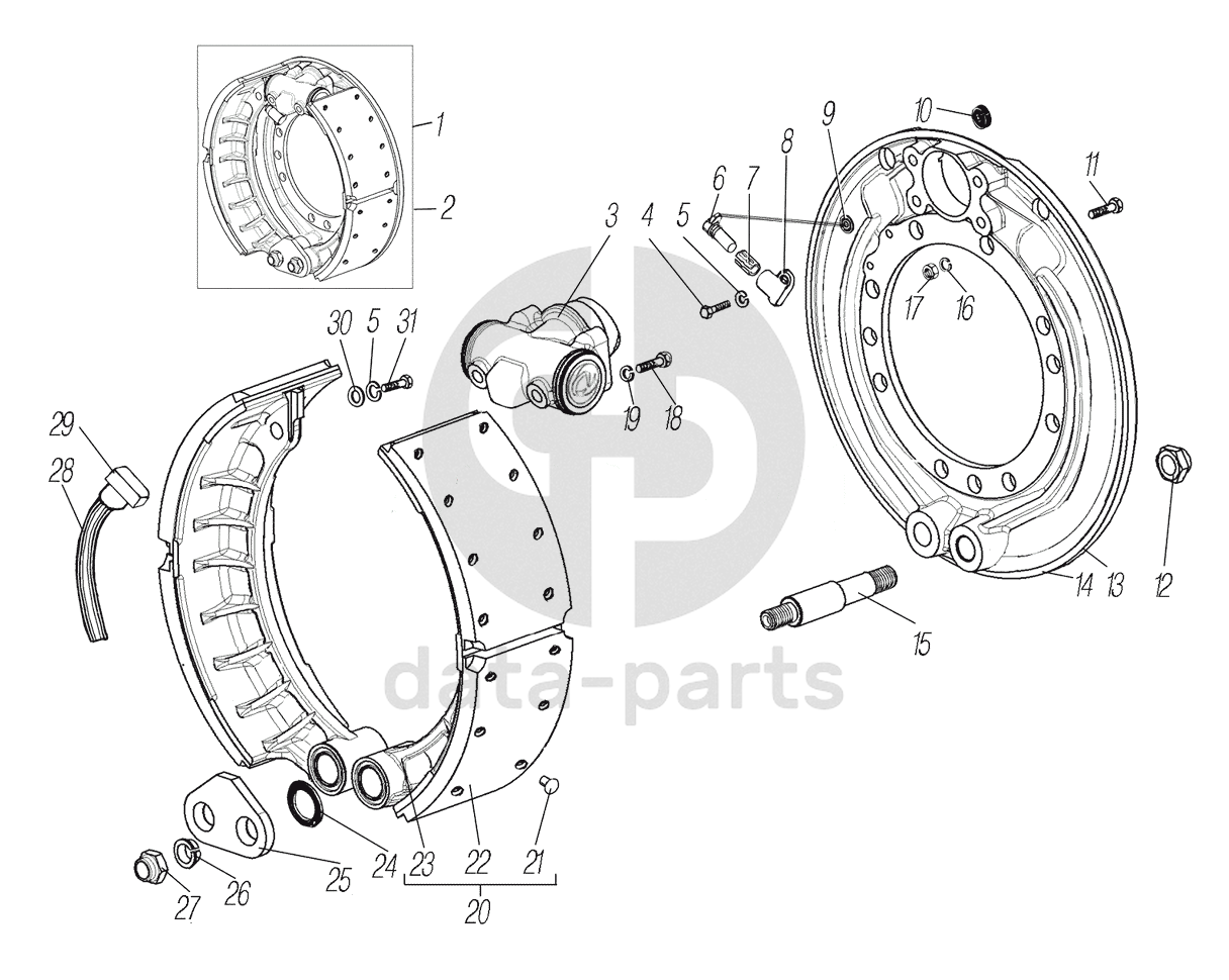 Ось УРАЛ колодки тормозной под пневмотормоз