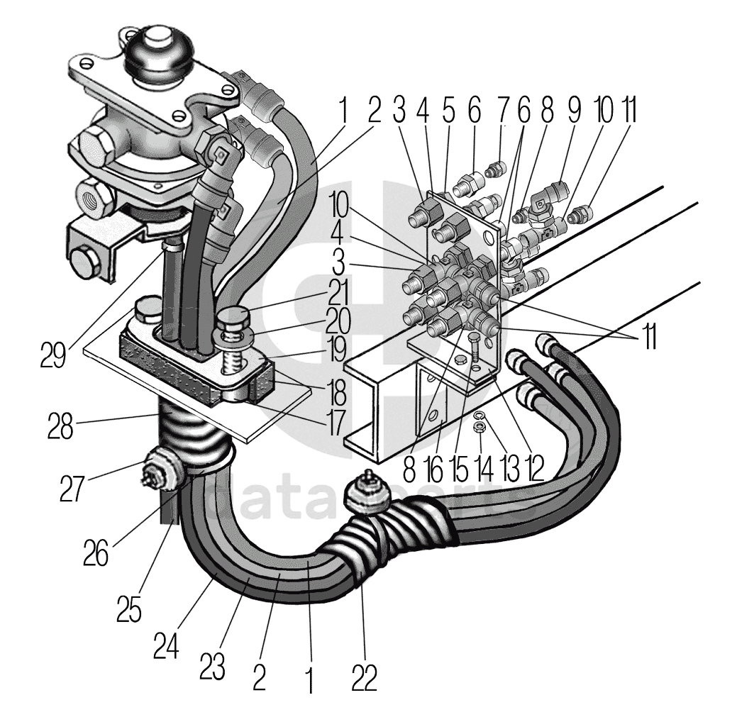 Установка пневмовыводов от тормозного крана УРАЛ-44202-3511-80М