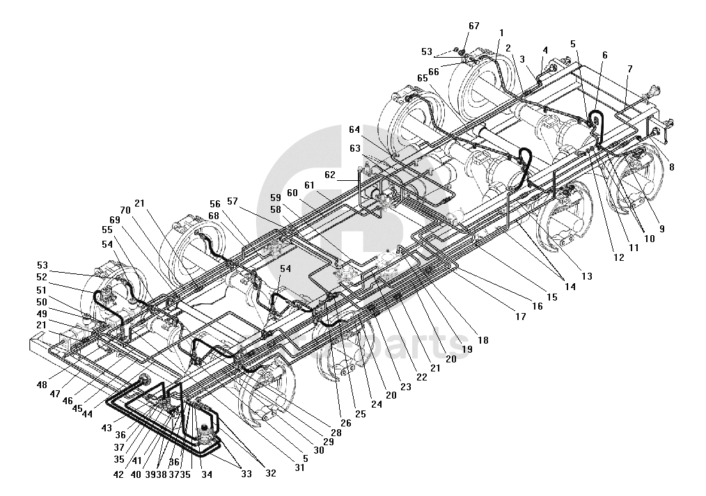Трубопроводы и шланги гидропневматического привода рабочих тормозов
