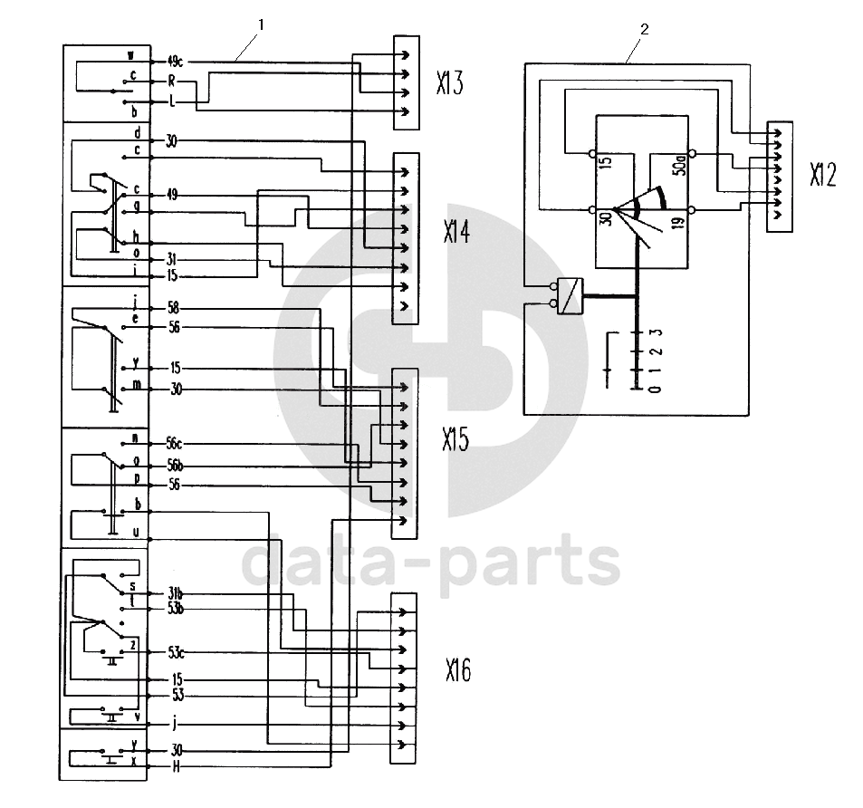 Схема электрическая приборов, расположенных на рулевой колонке