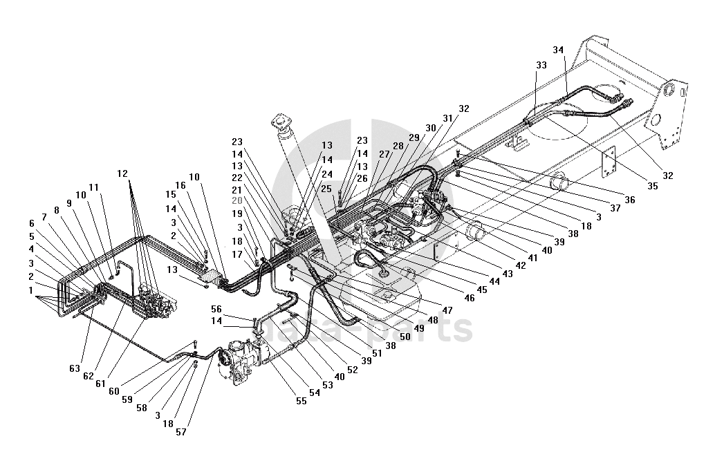 Трубопроводы и шланги самосвальной установки