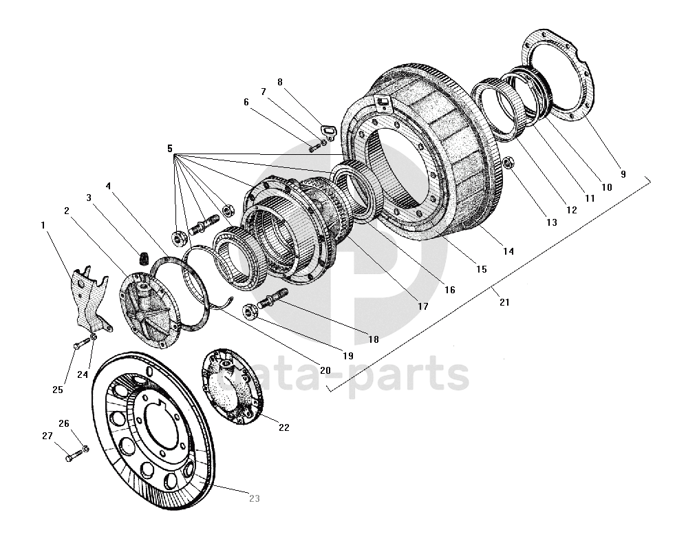 Ступица колеса и тормозной барабан переднего и заднего мостов
