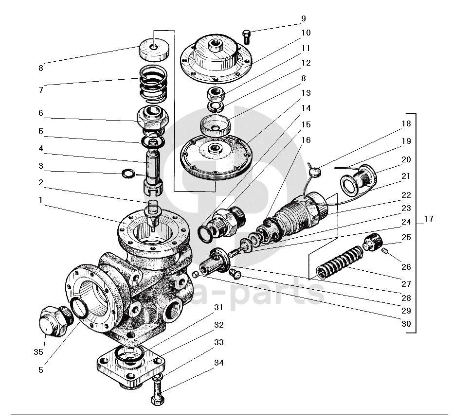 Кольцо ограничения подъёма кузова, гидрораспределителя и крана управления