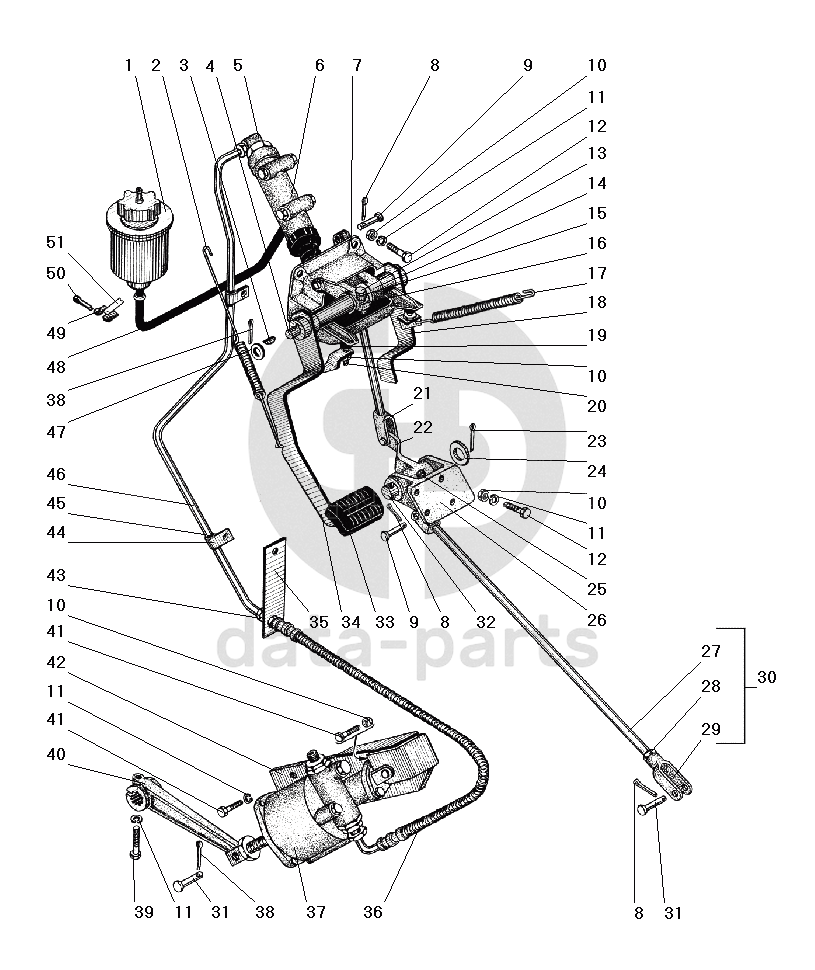 Привод педалей сцепления и тормоза с пневмогидроуправлением
