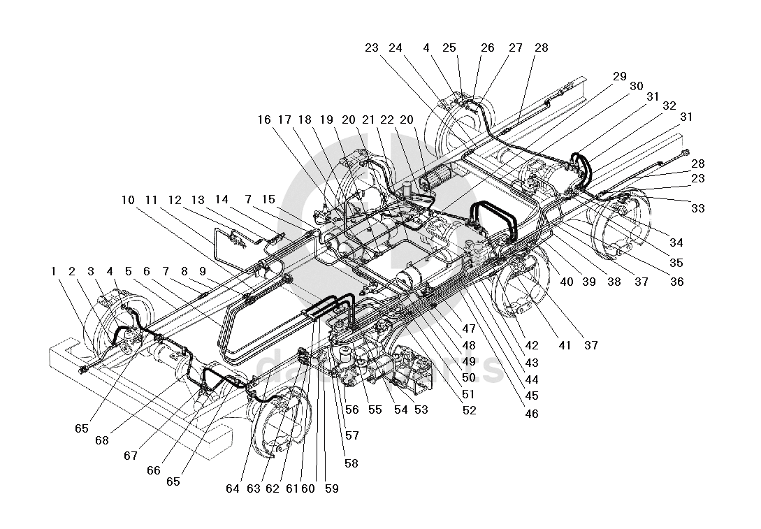 Трубопроводы и шланги гидропневматического привода рабочих тормозов