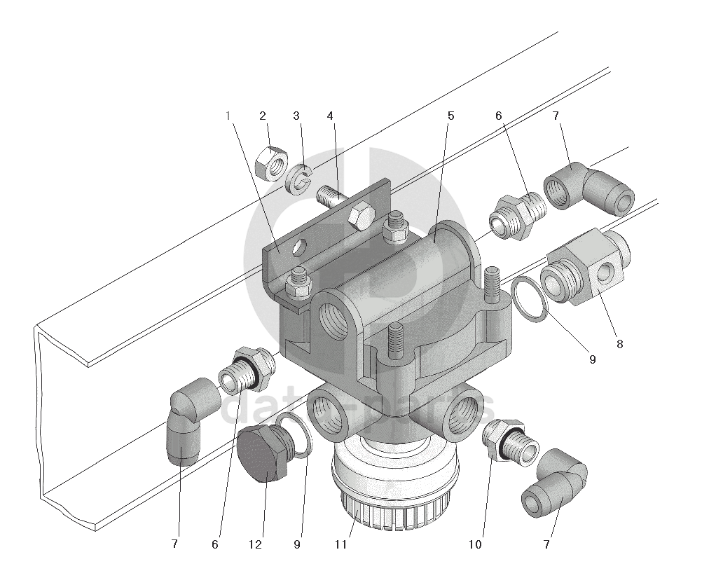 Установка ускорительного клапана (для стояночного тормоза)