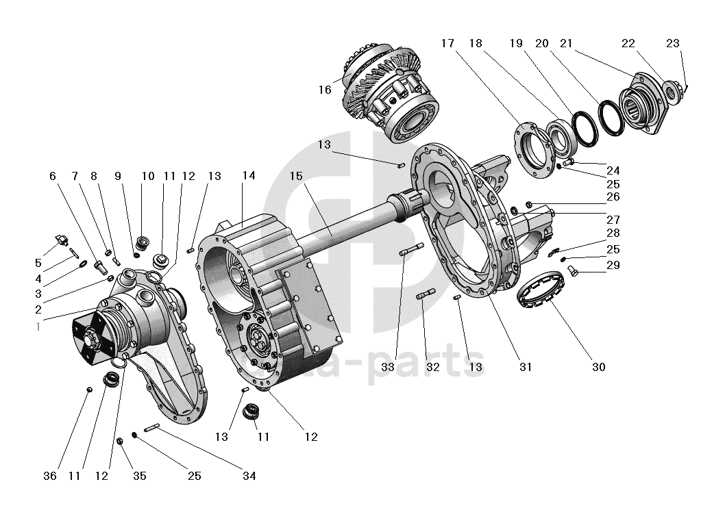 Редуктор с дифференциалом и картером цилиндрической передачи среднего моста