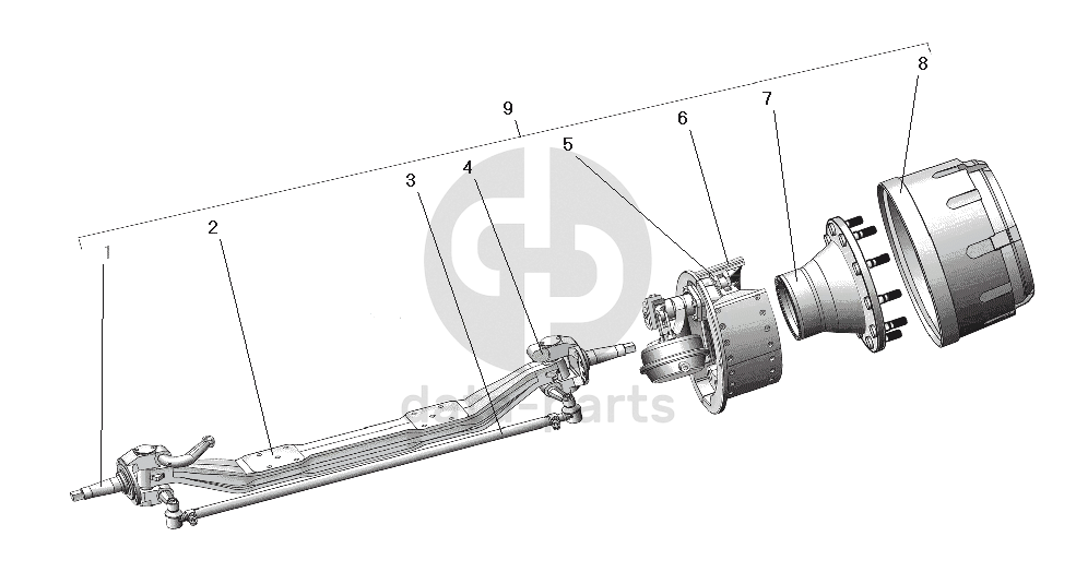 Ось передняя со ступицей и тормозом УРАЛ-63685