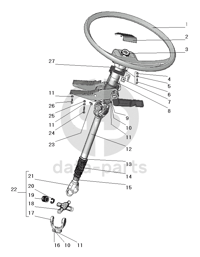 Шарнир вала рулевого управления УРАЛ-Безкапотник (480 мм, мелкий шлиц на вилке)