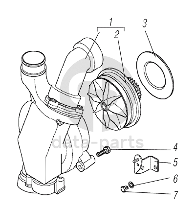 Корпус подшипника с осью, крыльчаткой и шестерней водяного насоса в сборе