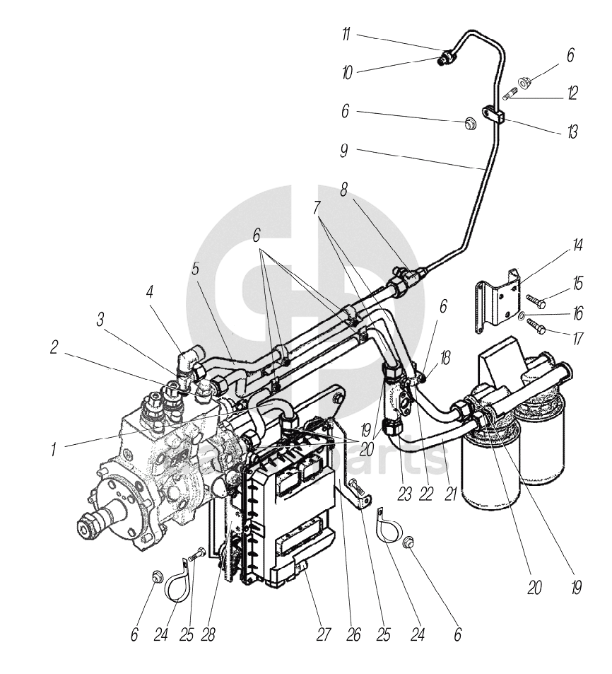 Трубка подвода топлива к фильтру тонкой очистки топлива в сборе