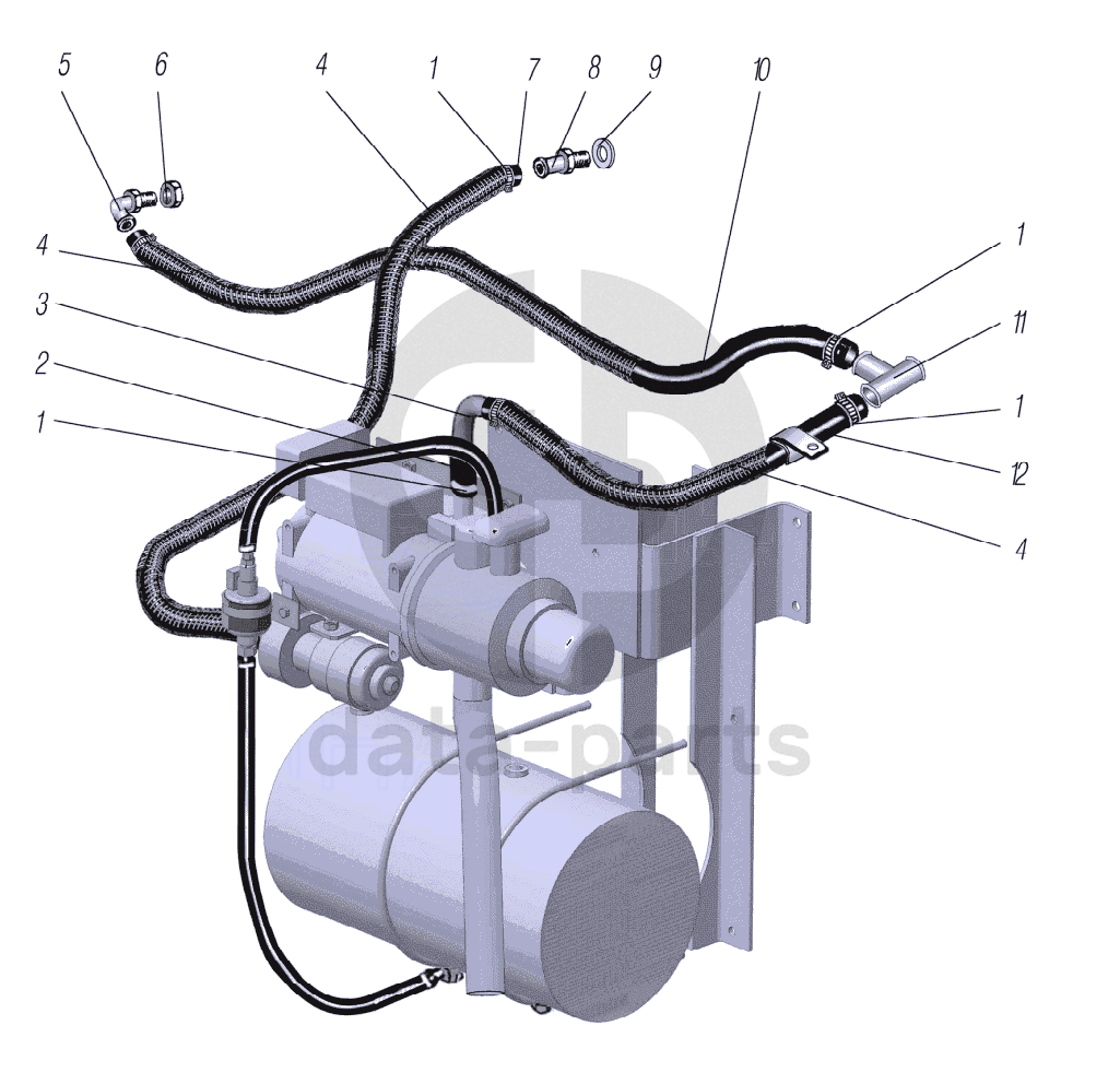 Трубопроводы и шланги системы предпускового подогрева двигателя УРАЛ-6370-1151
