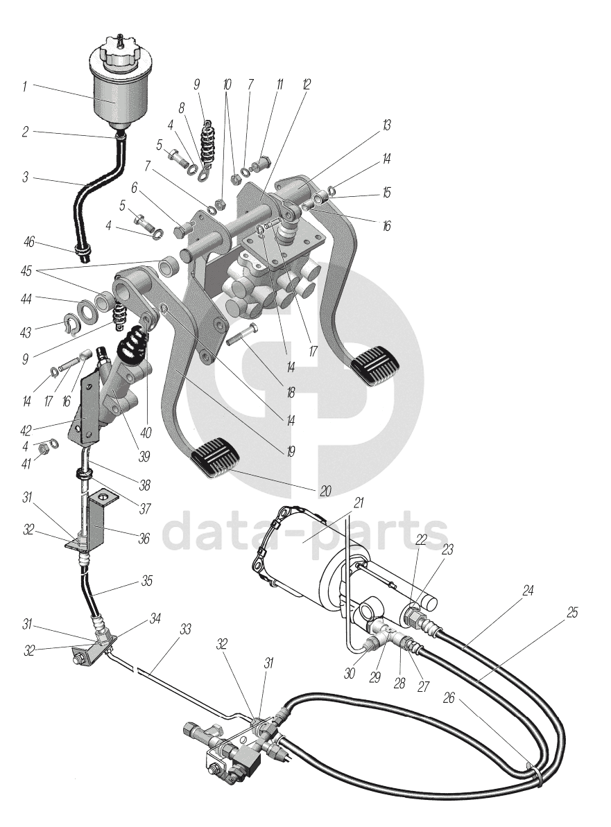 Привод педалей сцепления и тормоза УРАЛ-6370-1151