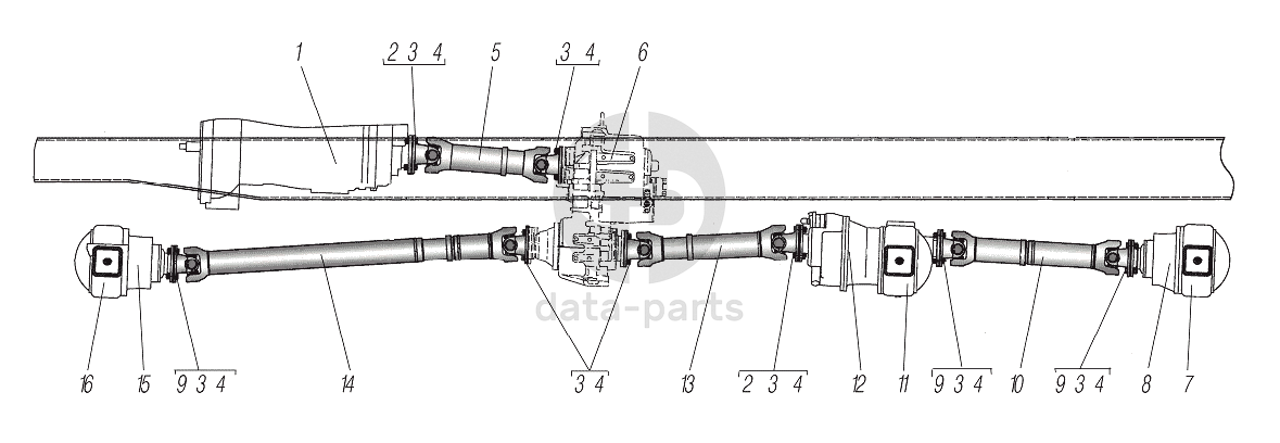 Вал карданный МАЗ заднего моста (4 отверстия торцевые шлицы) L=1692+85мм