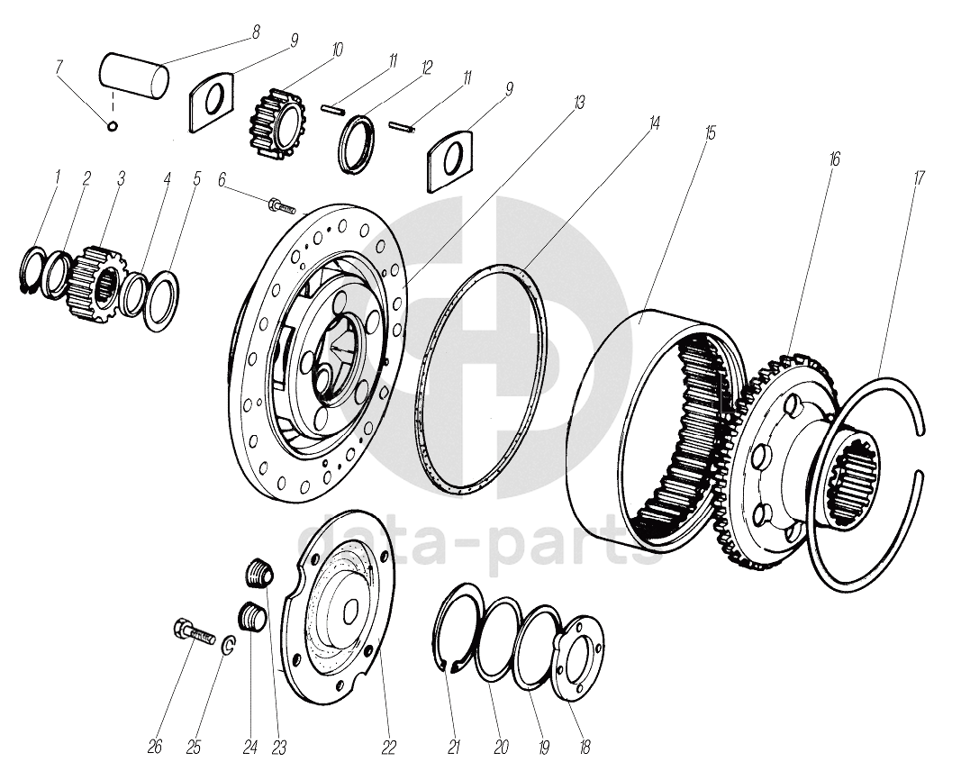 Планетарный механизм переднего, среднего и заднего мостов УРАЛ-6370-1151
