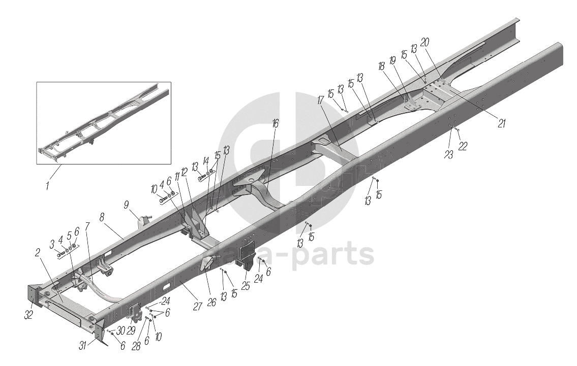 Болт М16х1.5х55 крепление буфера бокового переднего УРАЛ