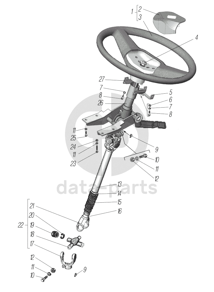 Колесо и вал рулевого управления УРАЛ-6370-1151