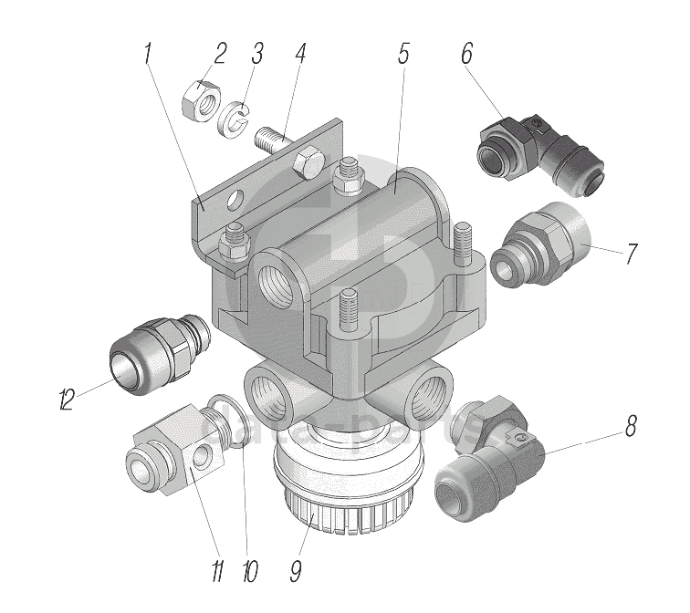 Установка ускорительного клапана стояночного тормоза УРАЛ-6370-1151