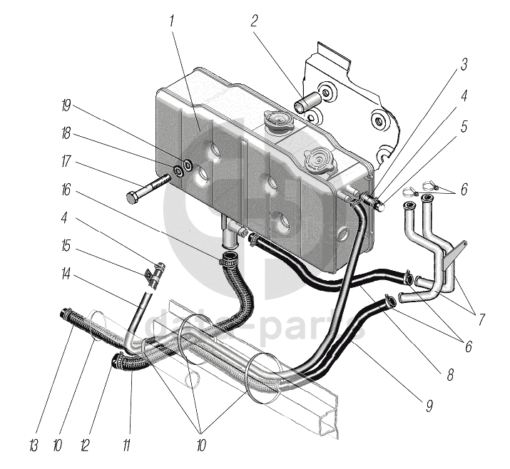 Установка расширительного бачка УРАЛ-6370-1121