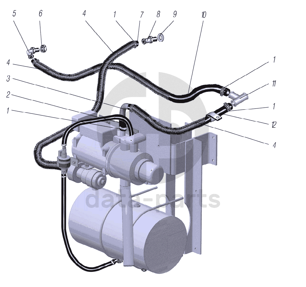 Трубопроводы и шланги системы предпускового подогрева двигателя УРАЛ-6370-1121