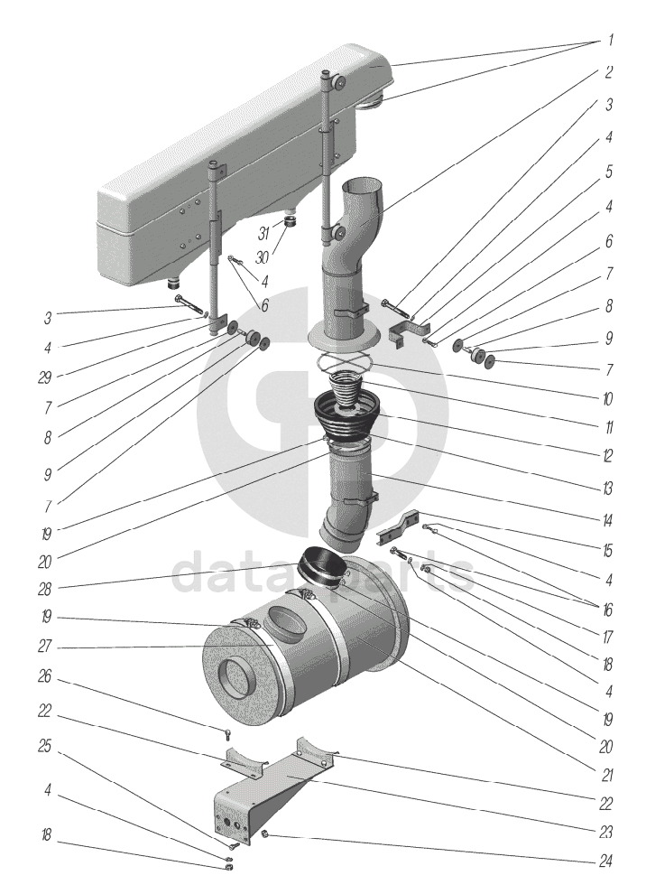 Установка воздушного фильтра и воздухозаборной трубы УРАЛ-6370-1121