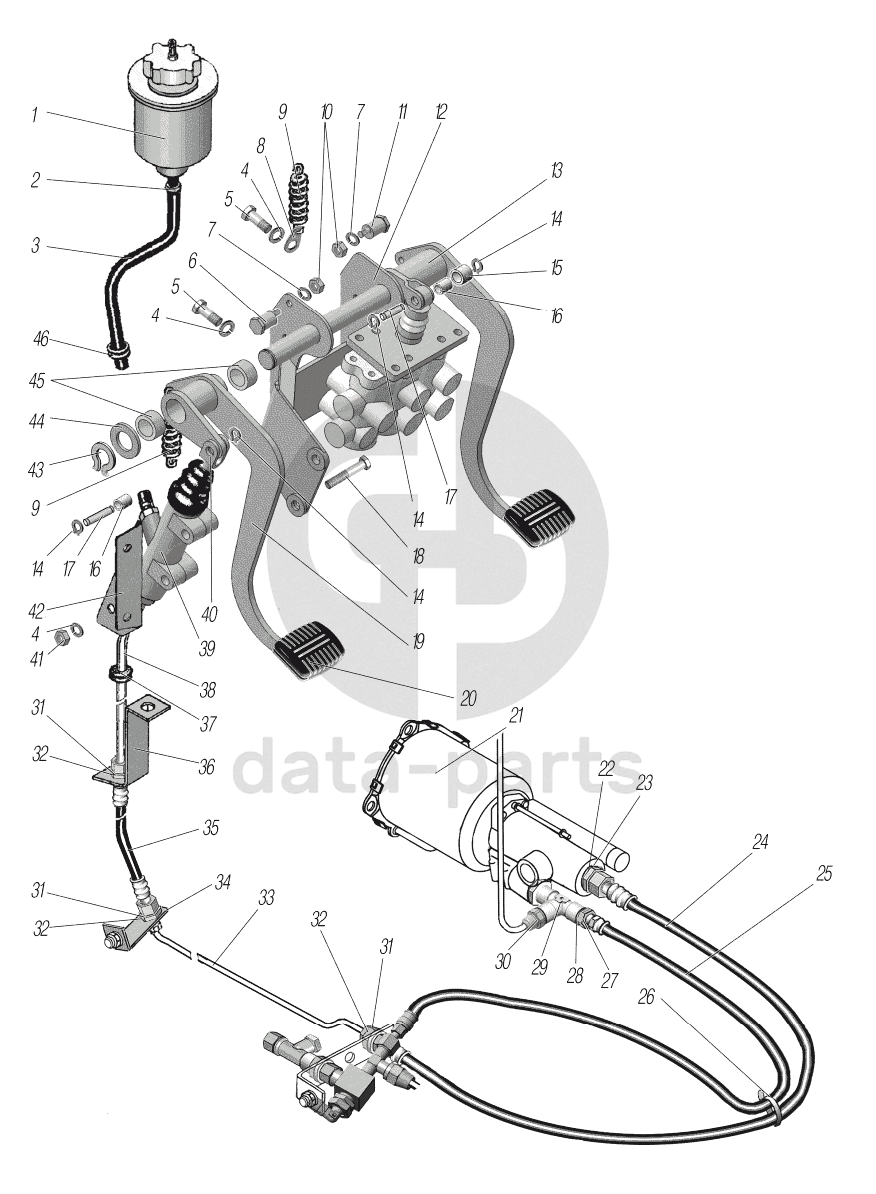 Привод педалей сцепления и тормоза УРАЛ-6370-1121