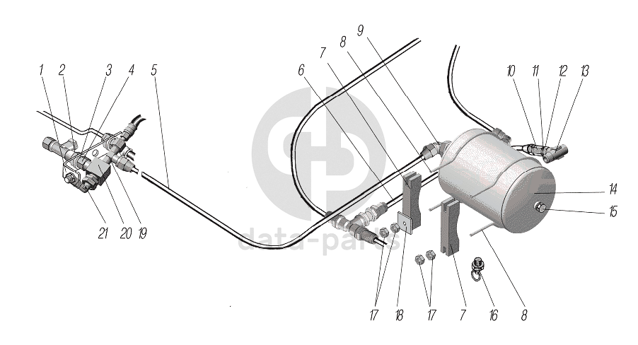 Установка пневмосистемы управления сцеплением УРАЛ-6370-1121