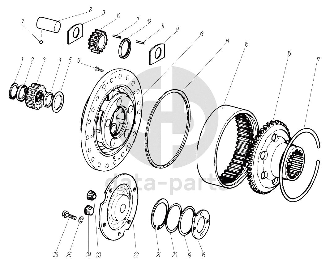 Планетарный механизм переднего, среднего и заднего мостов УРАЛ-6370-1121