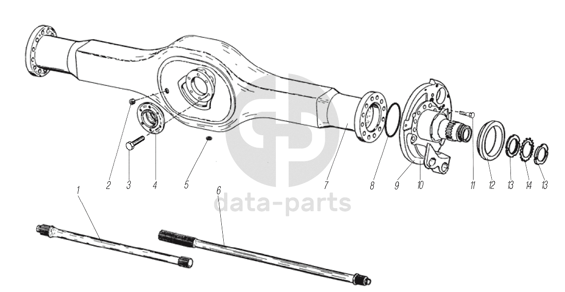 Картер полуосей среднего моста УРАЛ-6370-1121