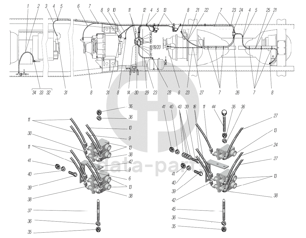 Установка пневмоуправления агрегатами трансмиссии УРАЛ-6370-1121